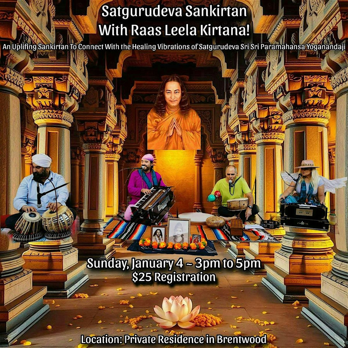 On Sunday, January 4th, at 3 PM, we'll gather in a serene outdoor sanctuary in Brentwood for an experience designed to uplift your soul. Through the healing vibrations of spiritual music, we will collectively invoke the blessings and loving presence of our beloved Satgurudeva Sri Sri Paramahansa Yoganandaji. This is more than just a musical event; it's an invitation to open your heart, release what no longer serves you, and bask in the radiant light of divine love ✨🎶✨