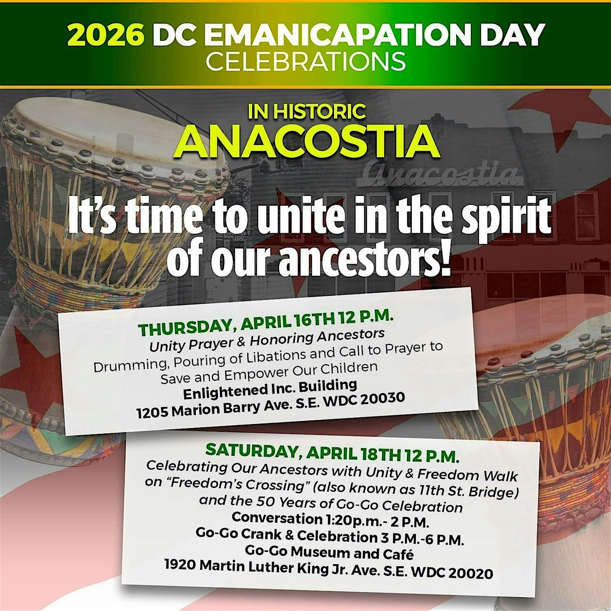 Sponsors: Go-Go Museum and Café; African Diaspora Ancestral Commemoration Institute (ADACI); and Zulu Global Enterprise LLC.