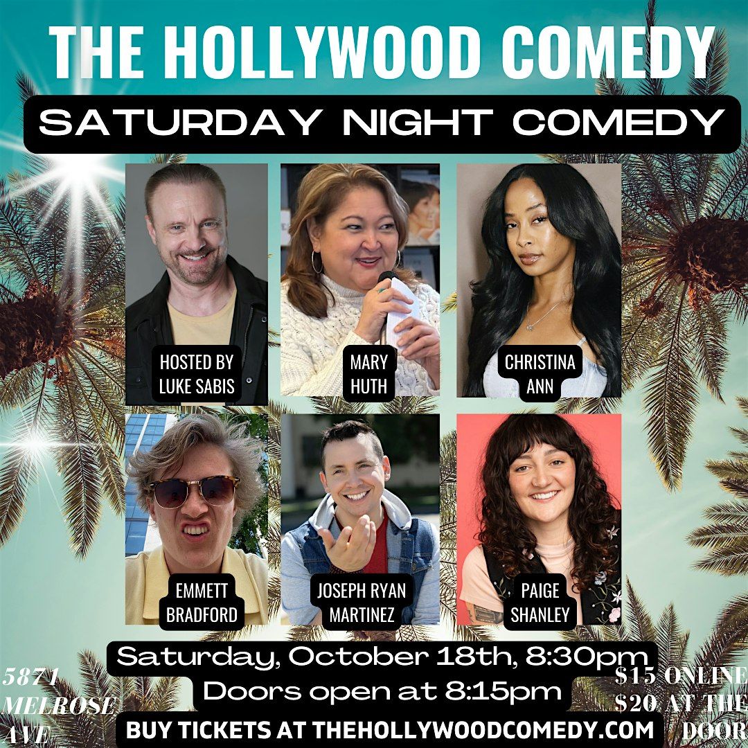 Welcome to **SATURDAY NIGHT COMEDY AT THE HOLLYWOOD COMEDY **! Get ready to laugh your socks off at this hilarious event happening at The Hollywood Comedy. Join us on **Saturday October 18th 2025** at **8:30** for a night full of gut-busting comedy performances by talented stand-up comedians. Don't miss out on the chance to unwind and have a great time with friends or family. Ages 18+ admitted. Get ready for a night of non-stop laughter and entertainment at The Hollywood Comedy! See you there!