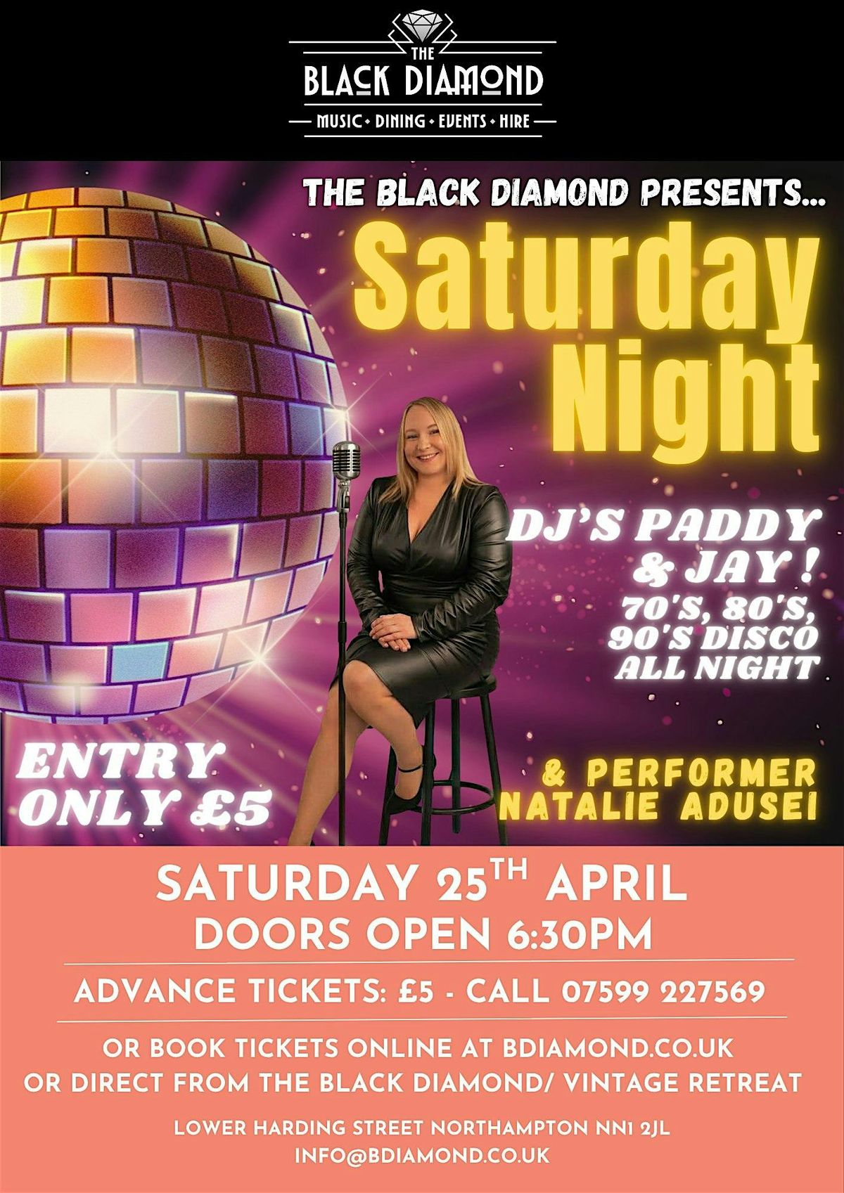 Join us at The Black Diamond for Saturday Night Party on Saturday 25th April.