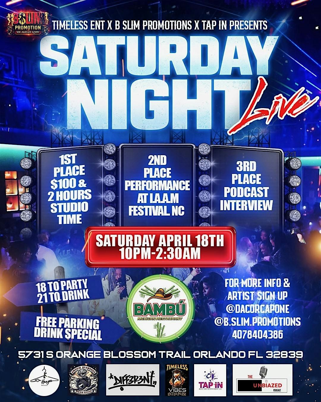 On April 18th, we’re turning up the heat in Orlando. Saturday Night Live is more than just a party—it’s a platform. We’re giving away studio time, cold hard cash, and a massive stage at the I.A.A.M Festival in North Carolina so we need you to let us know who you rock with!