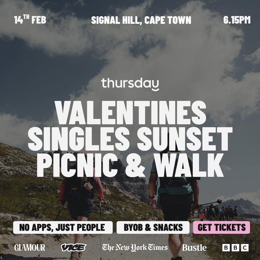 This Valentine’s Day evening, we’re taking dating offline and uphill with a Thursday x Lekker Hike takeover. Think golden-hour chats, scenic views, and a trail full of cute strangers who might just make you forget it’s Valentine’s Day… or make it even better.