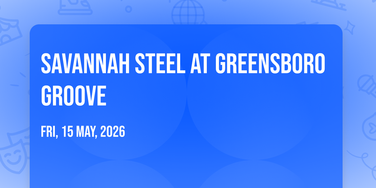 📍 Location: 36.0587, -79.8261✨ Enter a world of endless possibilities at Savannah Steel at Greensboro Groove, where every moment tells a story! 🏛️ The stunning Novant Health Fieldhouse at the Greensboro Coliseum Complex in vibrant Greensboro, NC transforms into a realm of wonder on July 25th, 2026 at 07:30 AM. 🌟 They have crafted an experience that goes beyond the ordinary, combining elements of surprise, delight, and pure entertainment. Every detail has been thoughtfully considered to ensure your journey with us is nothing short of extraordinary. 🎯 Join fellow adventure seekers and memory makers in this celebration of imagination and innovation. 🎊 Reserve your spot today and be part of something truly special!
