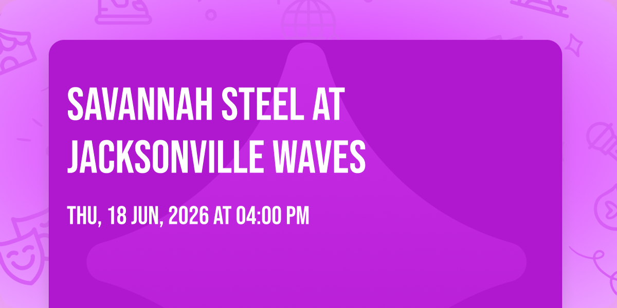 π Location: 30.3259, -81.645π Welcome to Savannah Steel at Jacksonville Waves, where dreams come alive and possibilities are endless! ποΈ Join us at VyStar Veterans Memorial Arena in the heart of Jacksonville, FL for an event that defies expectations. π On August 19th, 2026 at 11:00 PM, be part of something truly extraordinary as we bring together innovation, entertainment, and pure magic. β¨ Every aspect has been carefully designed to ensure an unforgettable experience for all our guests. Whether you're seeking adventure, inspiration, or simply a break from the ordinary, this event promises to deliver beyond your wildest dreams. π Prepare for a journey into the extraordinary!