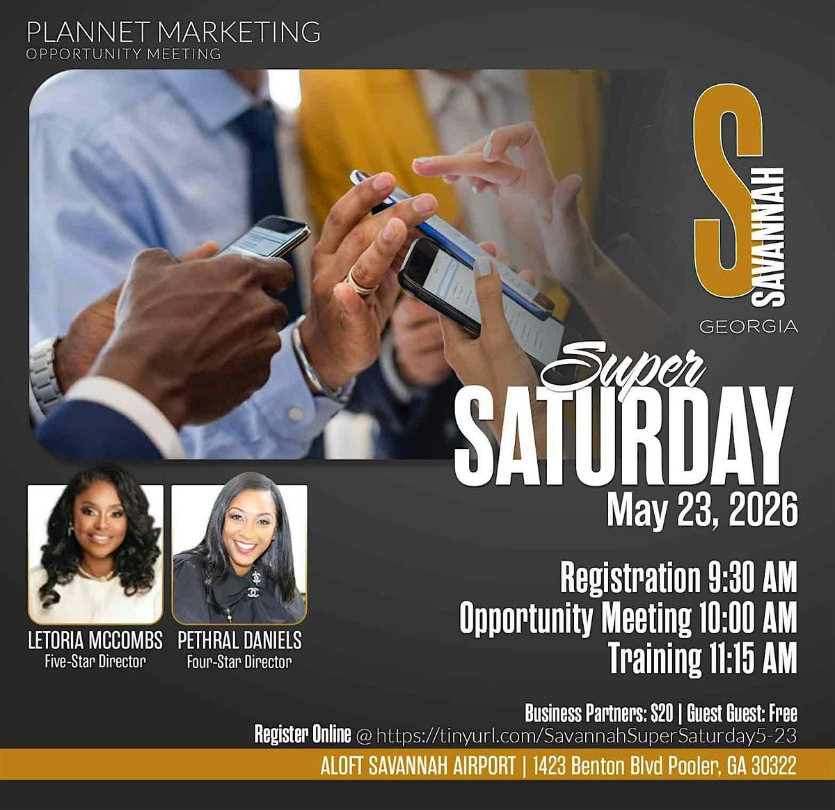 Join Top Income Earners 5 Star Director Letoria McCombs (500K+) and 4 Star Director Pethral Daniels (100k+) as they share their stories on going for 6 figure corporate professionals to Travel Business Entreprenuers, where they have gained time freedom, financial freedom and personal freedom. THIS EVENT WILL SELL OUT FAST! GET YOUR TICKET TODAY!