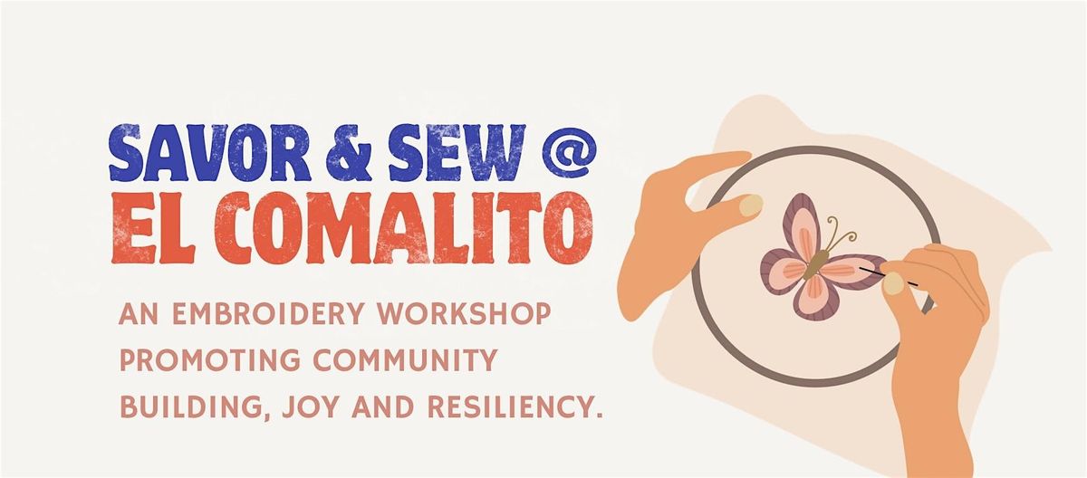 Taught by experienced instructors, participants will learn basic hand sewing and embroidery techniques using a butterfly motif! Cost includes all materials, embroidery hoop, 2 pupusas, and one fresco drink! Enjoy an afternoon of great food and community as part of our ongoing Savor & Sew Series @ El Comalito!