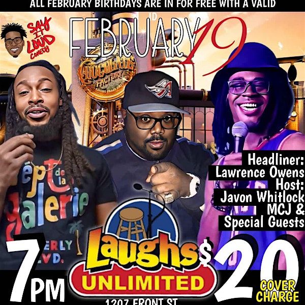 All February Birthdays are in for FREE with valid IDHeadliner: Lawrence Owens