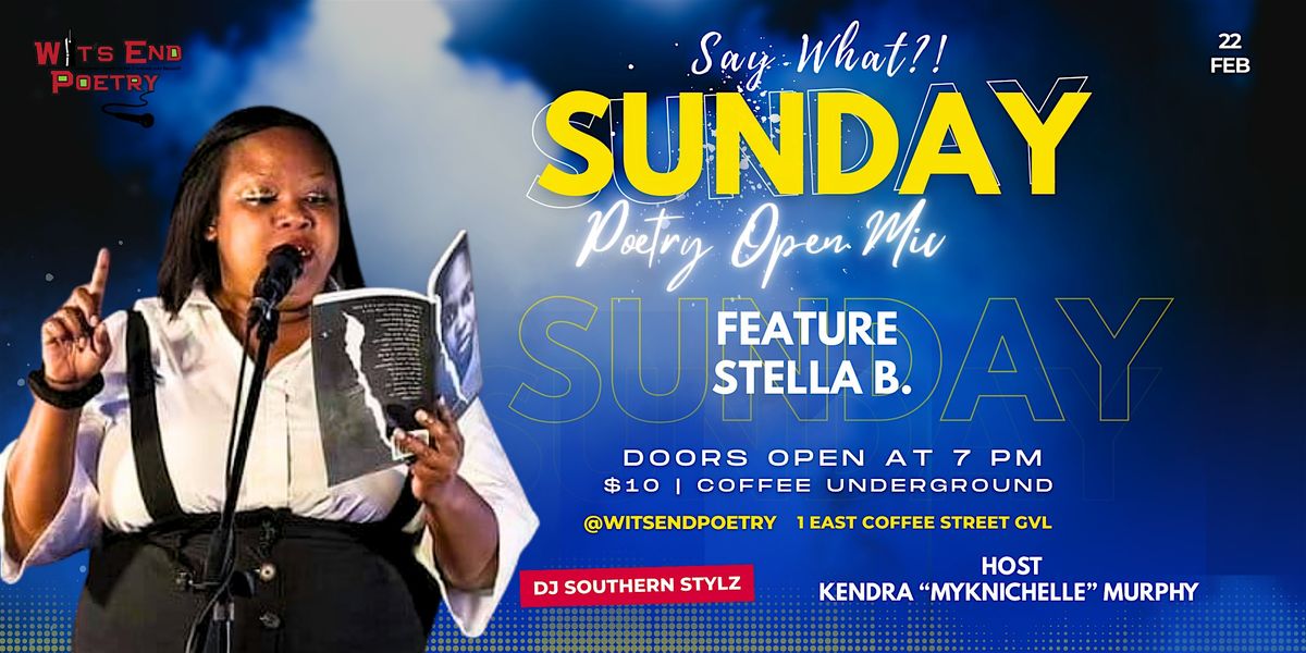 Say What?! Open Mic at Coffee Underground featuring Stella B of Fort Pierce, Florida! All poetry styles welcome! The night will also feature a full night of open mic slots for local poets on a first-come, first serve basis. Host Kendra "Myknichelle" Murphy.