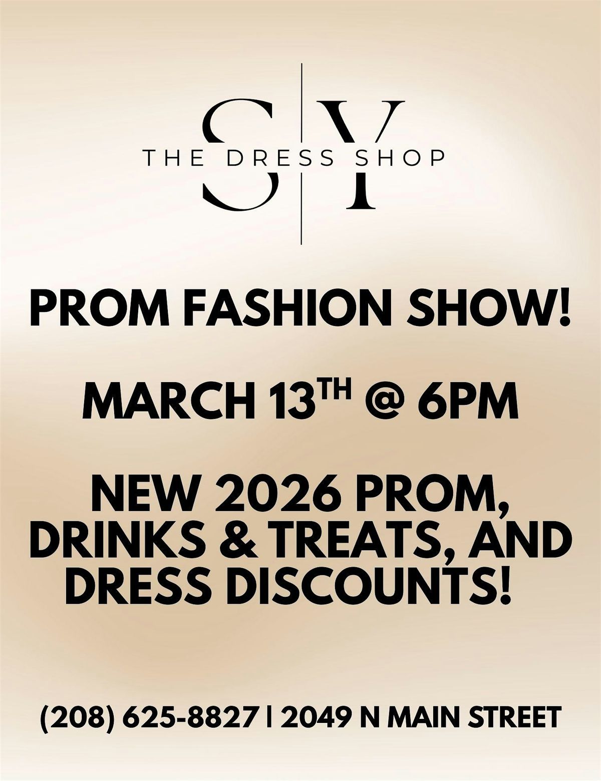 2026 Prom Fashion Show! Exclusive New Designs. Shop from the Runway or place your order for your size and colour! Free Show Tickets!