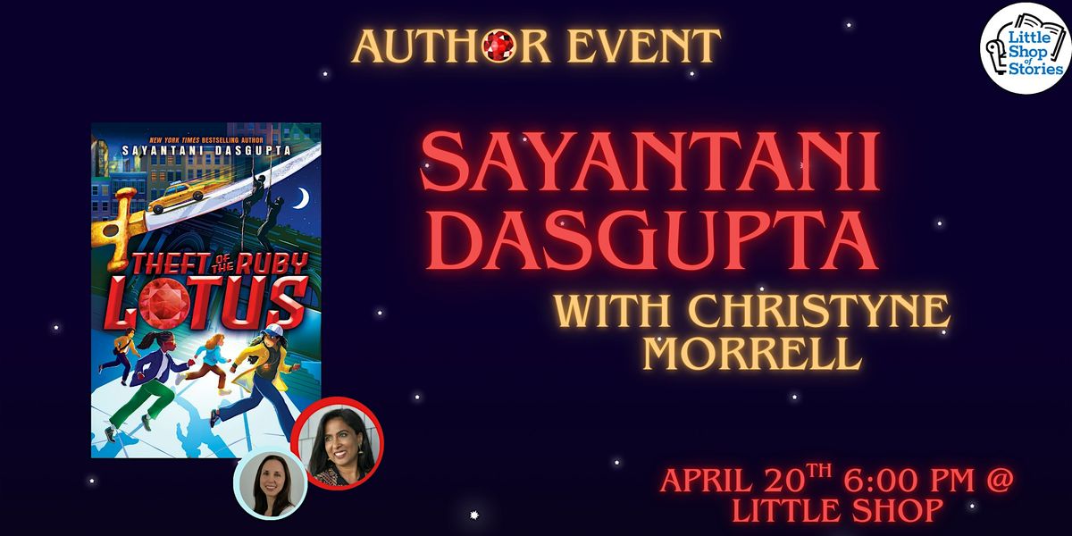 Help us celebrate an absolute gem of a book! Join us for a very special evening as we search for the mystical ruby of Little Shop and middle grade mystery writers Sayantani Dasgupta and Christyne Morrell chat with us all about Sayantani's reverse heist novel, The Theft of the Ruby Lotus! Read below for more details: