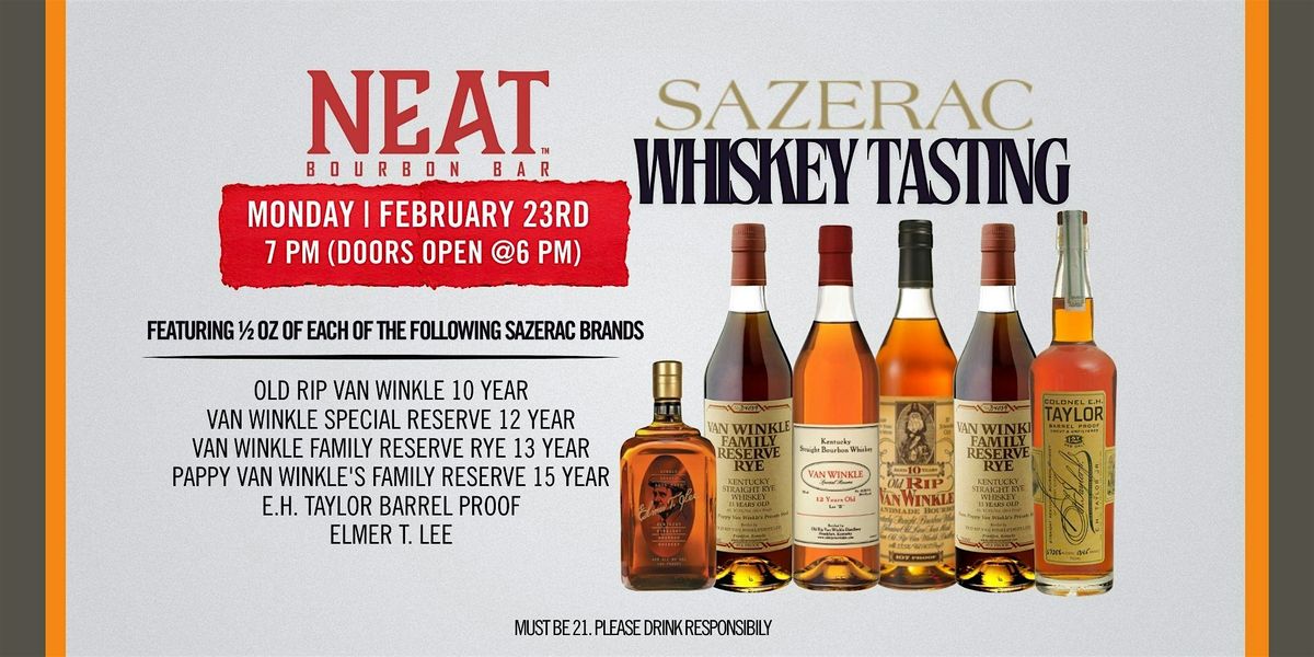 Enjoy a guided tasting experience featuring six distinct half-ounce pours of iconic Sazerac whiskeys featuring the following brands: