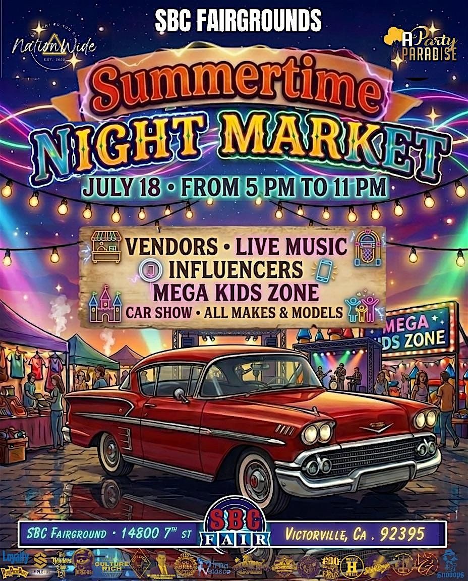 We are back with another Night Market this time bigger and better with a full on car show , a Mega kid zone. Biggest Kidzone in the HDAbout this Event