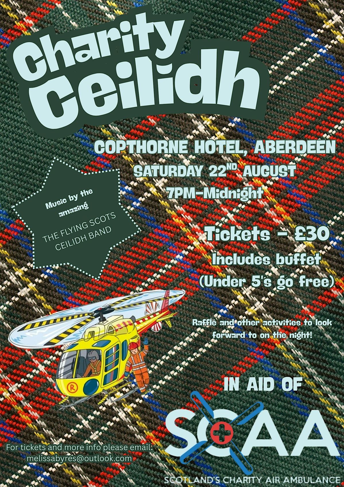Get ready for a fun night at the Copthorne Hotel on August 22, 2026 at 7:00 PM (BST). Come along to enjoy great music, dancing, and a chance to support a fantastic cause. Whether you’re a ceilidh pro or a first-timer, everyone’s welcome to join the party and have a blast. Don’t miss out on this lively evening filled with good vibes and great company!