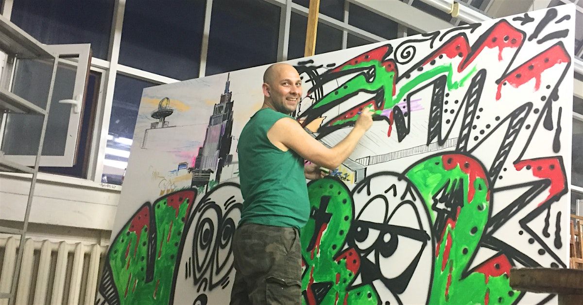 This course is intended for those interested in learning street art techniques from an artist with over 30 years of experience creating large scale murals. There will be a focus on freehand drawing and tagging basics ( a form of calligraphy ). Materials used for this will include demonstrations on working with Uni Posca paint pens (the urban artists favorite), which range in a variety of shapes and giant dynamic sizes and colours for fast coverage . Also an introduction to using black/white gesso paint on large scale and fluorescent system 3 acrylic paints for a pop art style effect. You will be shown how to make your own homemade urban art markers, paint using sponges, brushes and various other tools as suggested applicators. This style also mirrors the classical techniques used to transcribe old masters in an institution specialising in classical painting and drawing.