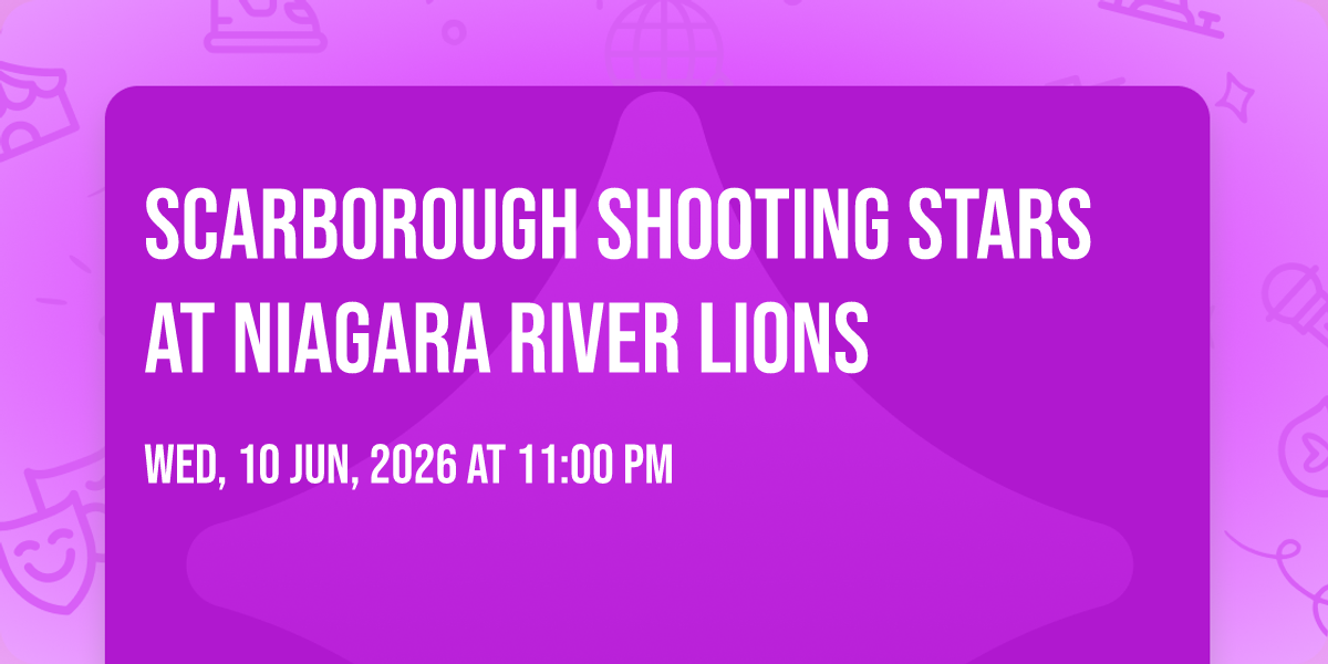 π Location: 43.15642, -79.244β¨ Experience the magic of Scarborough Shooting Stars at Niagara River Lions, where moments become memories that last a lifetime! ποΈ The iconic Meridian Centre in St. Catharines, ON sets the perfect stage for an unforgettable celebration on June 10th, 2026 at 11:00 PM. π It's been a curated experience that brings together the best of entertainment and innovation, creating an atmosphere of wonder and excitement. From the moment you arrive, you'll be immersed in a world where the ordinary transforms into the extraordinary. π Book early to secure your place in what promises to be an event that will be talked about for years to come!