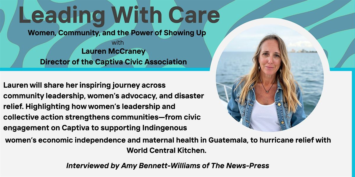 Lauren McCraney is the director at Captiva Civic Association who has interesting experiences in art, business, women’s advocacy and resilience. She will share an inspiring journey that connects community leadership at the Captiva Civic Association with her work alongside women’s cooperatives in Guatemala and her disaster-relief efforts with World Central Kitchen. Through vivid stories and short video clips, she will highlight how women’s leadership, cultural resilience, and collective action transform communities in times of both calm and crisis. From strengthening civic engagement on Captiva, to supporting economic independence and maternal health for Indigenous women, to mobilizing food relief after hurricanes, Lauren weaves together lessons on purpose-driven leadership, compassion in action, and the power of showing up for one another.