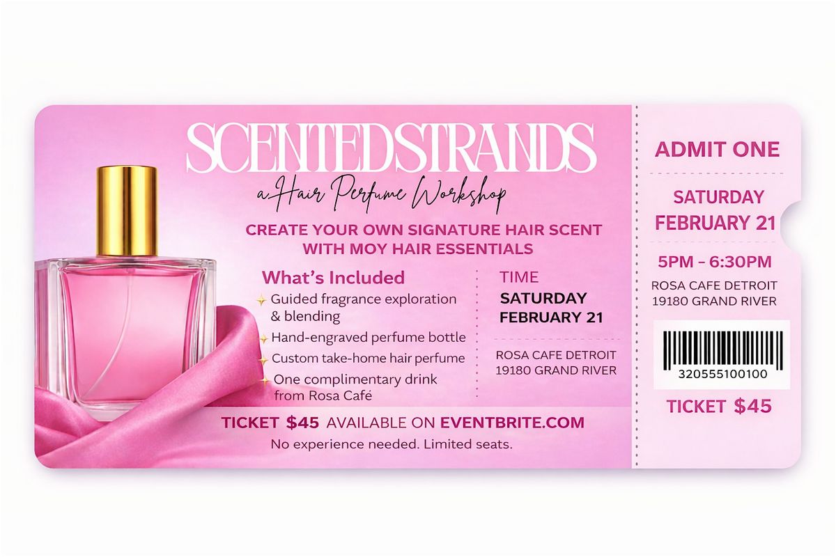 Join us for an intimate and creative evening at Scented Strands, a hands-on hair perfume workshop hosted by Moy Hair Essentials.