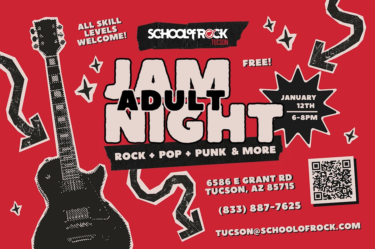 It’s never too late to start your rock journey! Join School of Rock Tucson for a fun, no-pressure night of free adult music lessons and jam sessions. Whether you’ve never touched an instrument or you’re ready to dust off your old guitar, this event is for YOU.