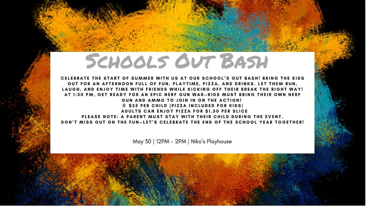 Celebrate the start of summer with us at our School’s Out Bash! Bring the kids out for an afternoon full of fun, playtime, pizza, and drinks. Let them run, laugh, and enjoy time with friends while kicking off their break the right way!