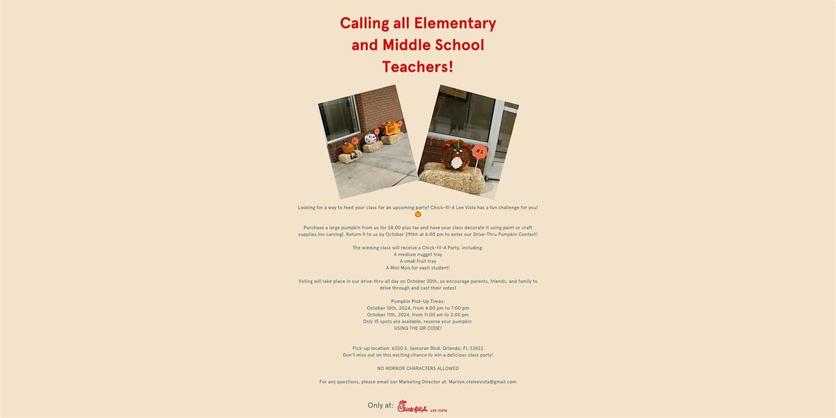 Looking for a way to feed your class for an upcoming party? Chick-fil-A Lee Vista has a fun challenge for you! 🎃