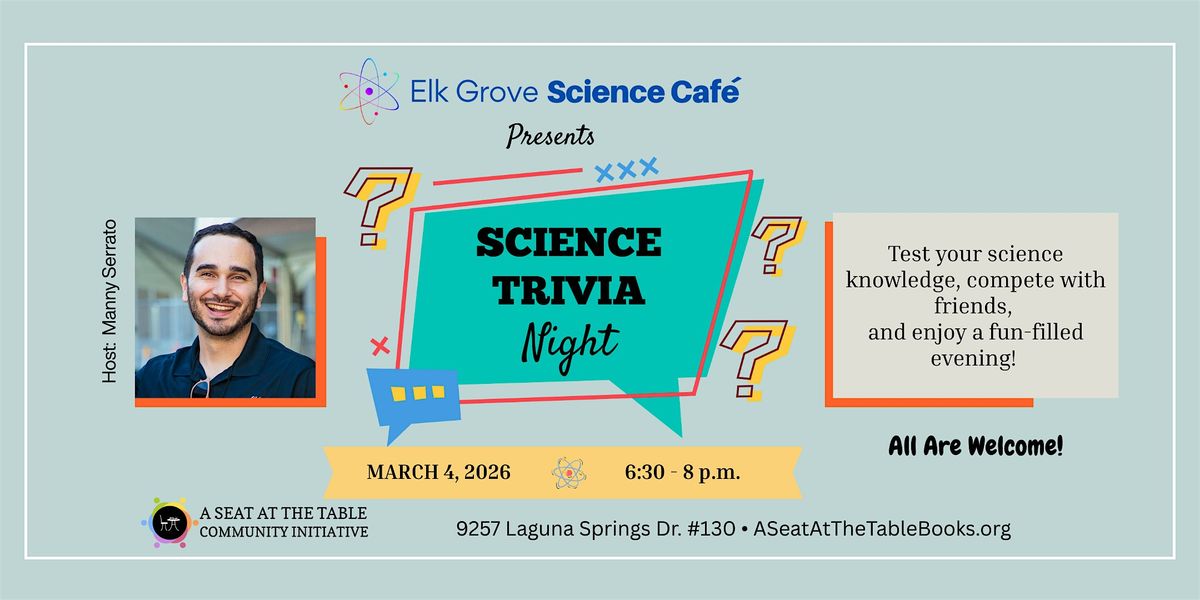 🔬 Welcome to Elk Grove Science Café! Held around the world, Science Cafés are monthly conversations that make science accessible for all. While this is geared for adults, all ages are welcome! RSVPs are strongly encouraged, as this free event has been filling up.