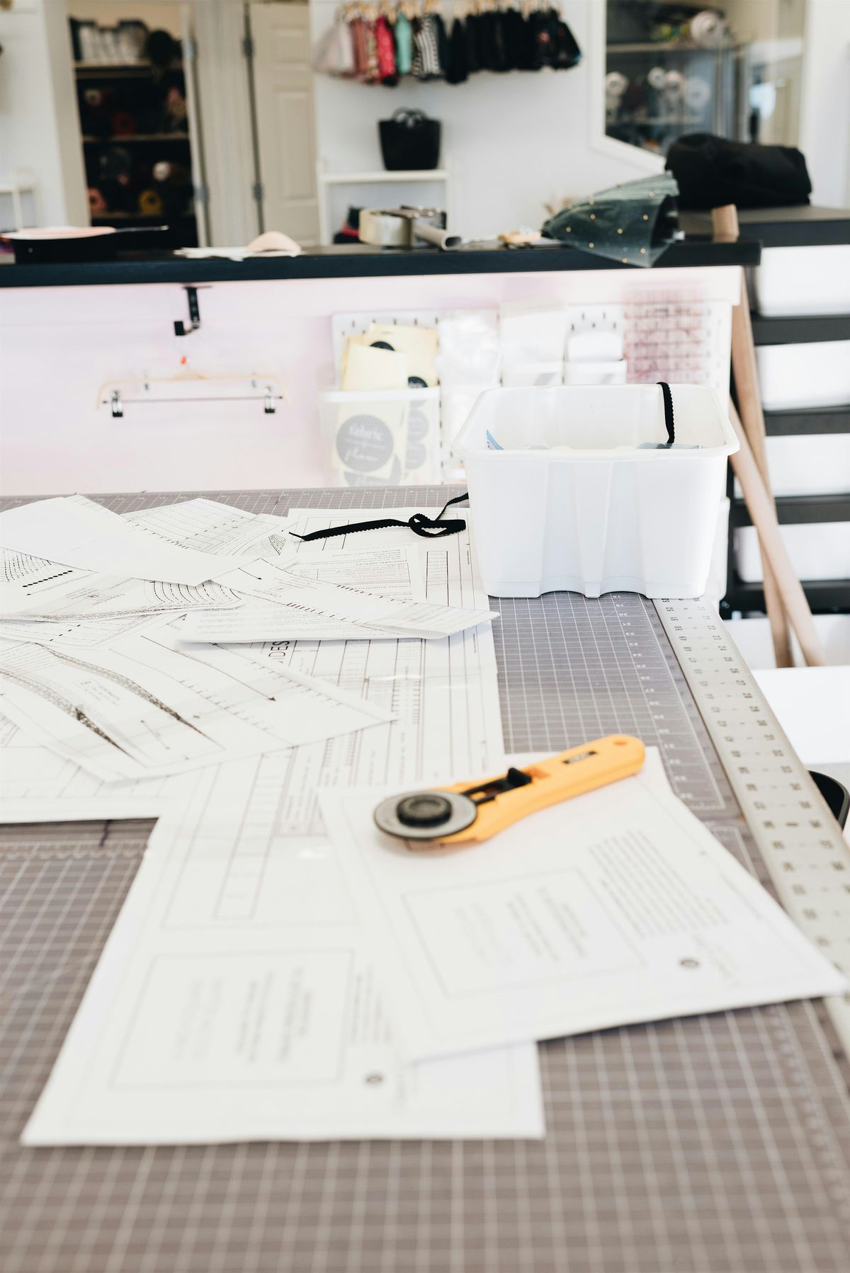 The doors to the WORKROOM will be open from 7-10 pm for an evening of pattern taping, chatting and a whole LOT of laughing with fellow fabric enthusiasts.
