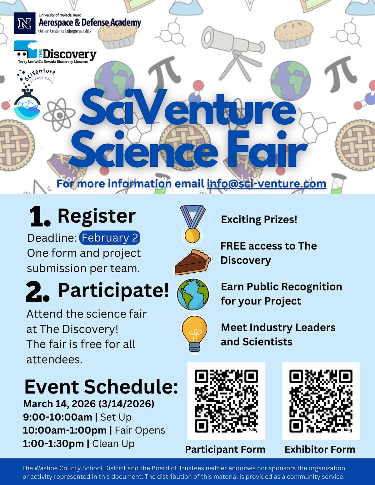 The 2nd Annual SciVenture Science Fair will take place at The Discovery as a hands-on celebration of science in honor of Pi Day. The event will showcase local student science fair projects alongside STEM-focused community organizations, offering interactive activities that engage students and families in science, technology, engineering, and mathematics. Admission to The Discovery during the event hours will be free, courtesy of sponsorship by The Aerospace & Defense Academy, and is valid from 10:00 a.m. to 12:00 p.m. only. The event will also highlight the importance of innovation and science communication, featuring Taylor Wilson, internationally recognized scientist, inventor, and science advocate, as the keynote speaker.More information is available at https://aha-projects.org/sciventure/.