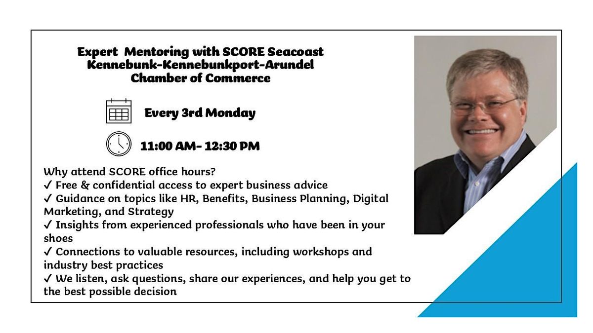 Exciting news for business owners in the Kennebunk – Kennebunkport -Arundel communities. SCORE is now offering dedicated office hours, providing a valuableopportunity to connect with experienced business mentors.