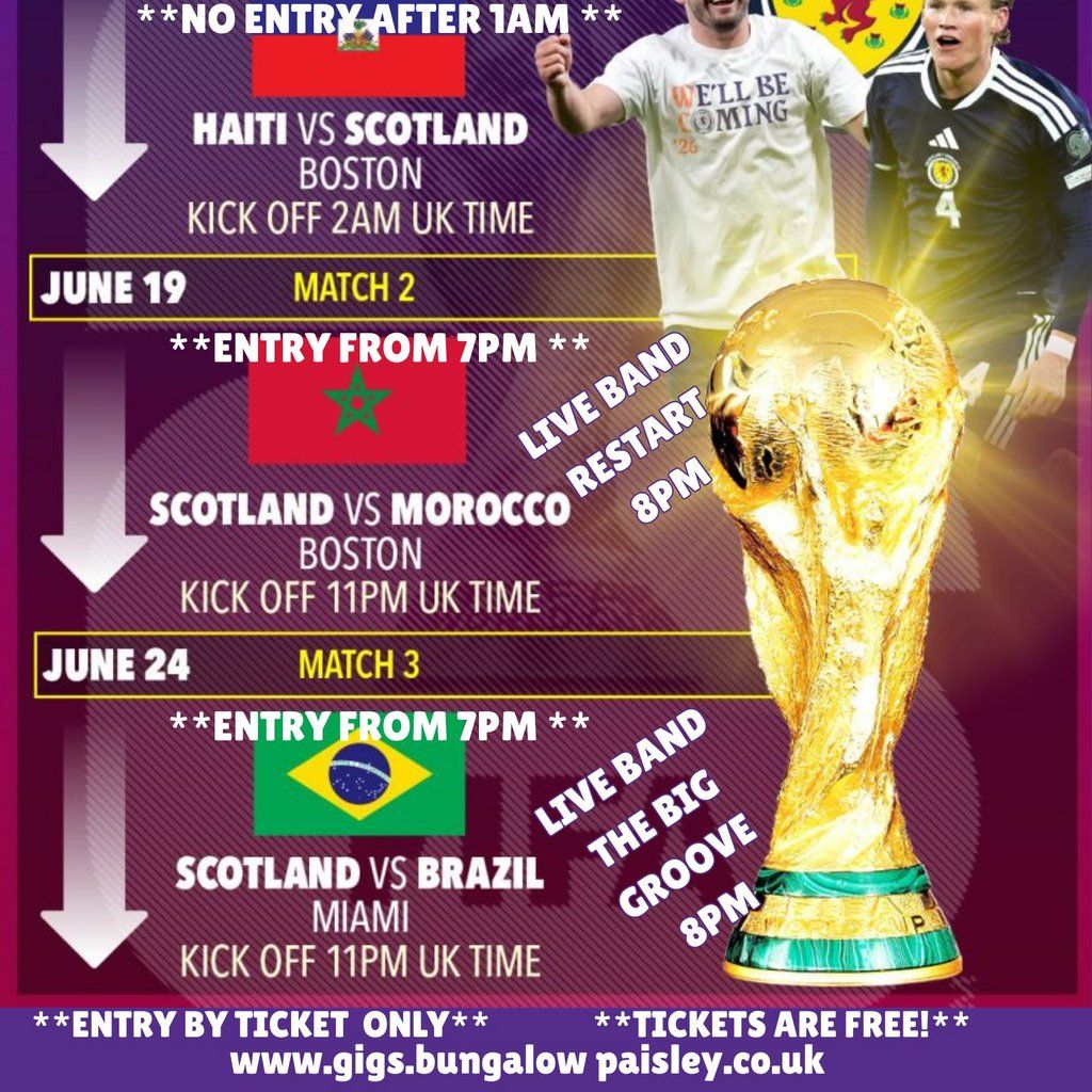 The Bungalow Fan Zone screening. Entry with ticket onlyLive music from The Big Groove from 8pm