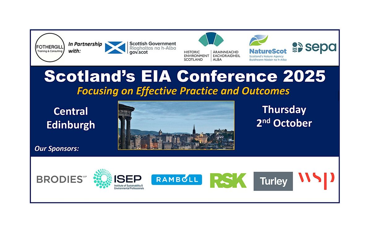Now in its nineth year, the 2025 edition of Scotland’s Environmental Impact Assessment (EIA) Conference will be held on Thursday 2nd October in central Edinburgh. Our theme for this year places the focus on effective practice and outcomes to demonstrate what EIA achieves for developers and the environment and how it goes about this.
