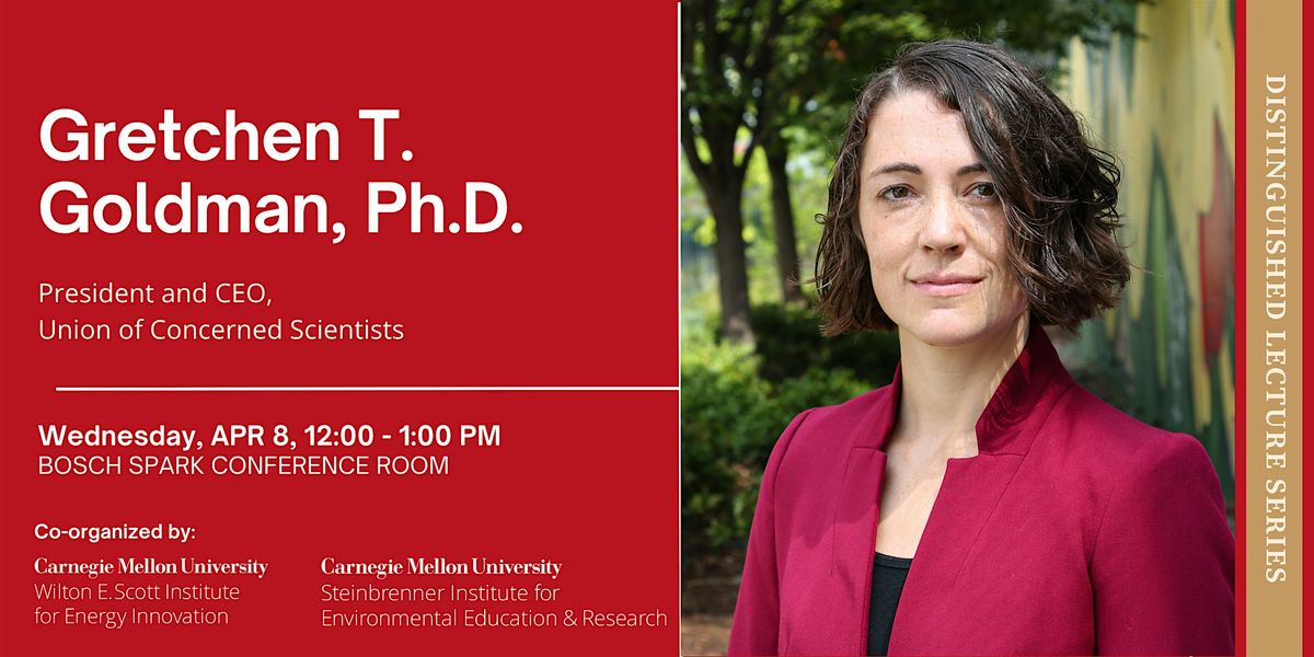 Join us on Wednesday, April 8, for a Distinguished Lecture at the Scott Institute for Energy Innovation, featuring Gretchen T. Goldman, Ph.D., President and CEO of the Union of Concerned Scientists, "On Stepping Up And Being Bold: Defending Science and Making Progress in the Current Climate":