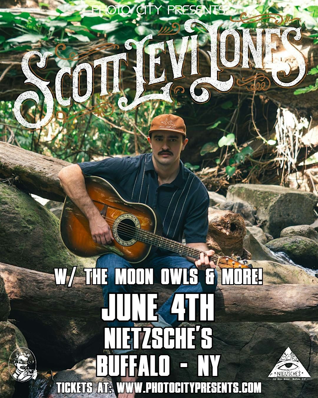 Scott Levi Jones is an Americana singer-songwriter emerging from the hollers of Cheatham County with a craft honed in the heart of Nashville, TN. The songwriter's lyrical ability has been compared to that of John Prine and Steve Goodman, yet his music reflects the sound of folk rock influences such as The Band and Little Feat. His hard-headed refusal to play in cover bands has resulted in years of refining an energetic original show, including witty banter between tunes. Appearing on marquee signs as ‘Scott Levi Jones & The Holy Cow’, the band's touring has expanded throughout the USA. Jones has graced the stages of some Nashville's most iconic venues, including 3rd & Lindsley, The Bluebird Cafe, and The Basement. He has shared the stage with nationally acclaimed acts, including an opening set for the Red Clay Strays in Honolulu. His live performances have also been featured on prominent radio station such as Red Barn Radio, WMOT Finally Friday, Lightning 100 Sunday Night Live, and WDVX Blue Plate Special