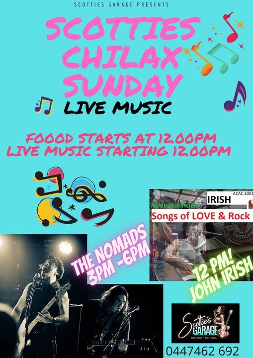Come and Enjoy The Nomads at scotties chillax sunday session. with support band John Irish & Stormin Norman starting at 12pm.