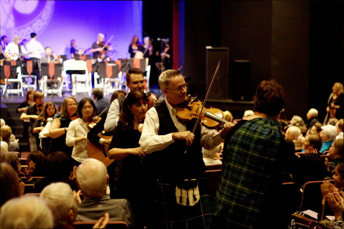 A fiery program of marches, strathspeys, reels and jigs in the rousing Scottish tradition will be performed by the 40-member orchestra featuring fiddles, cellos, basses, drums, piano, harps, accordions, whistles, bagpipes, and Gaelic song.