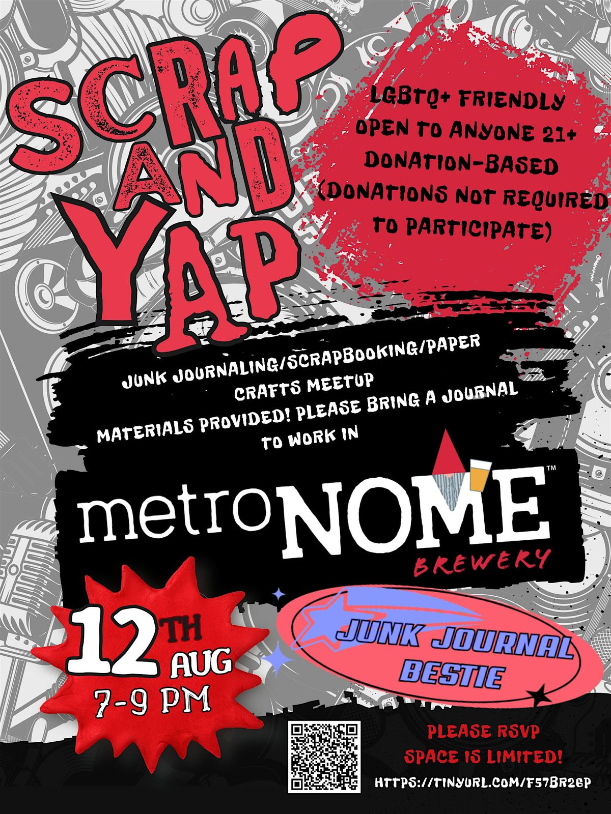 This session, we will be meeting at the fabulous MetroNOME Brewing from 7-9 pm. Please support our amazing hosts and thank them for providing us with this awesome space by buying a beverage from them! <3 This is an LGBTQ+ friendly crafting meet-up for anybody who loves to junk journal, scrapbook, collage, or do paper crafts and chat with new friends. Supplies/ephemera will be provided! Please bring a journal to work in and any ephemera you would like to share/trade. (If you need a journal to start, I'll have extra ones available.)