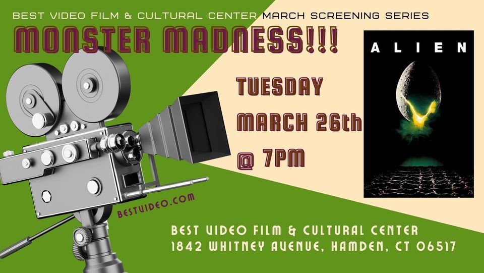 Please join BVFCC for Alien, the final installment in our March Monster Madness Screening Series hosted by BVFCC staffer Anthony Capasso on Tuesday, March 26th at 7pm. Entry is FREE to BVFCC members and $10 for non-members. The BVCoffee Bar will be open for beer, wine, café drinks, and FREE freshly-popped popcorn!Alien is a 1979 science fiction horror film directed by Ridley Scott and written by Dan O'Bannon. Based on a story by O'Bannon and Ronald Shusett, it follows the crew of the commercial space tug Nostromo, who, after coming across a mysterious derelict spaceship on an uncharted planetoid, find themselves up against a hostile and deadly extraterrestrial set loose on the Nostromo. The film stars Tom Skerritt, Sigourney Weaver, Veronica Cartwright, Harry Dean Stanton, John Hurt, Ian Holm, and Yaphet Kotto. It was produced by Gordon Carroll, David Giler, and Walter Hill through their company Brandywine Productions and was distributed by 20th Century-Fox. Giler and Hill revised and made additions to the script; Shusett was the executive producer. The Alien and its accompanying artifacts were designed by the Swiss artist H. R. Giger, while concept artists Ron Cobb and Chris Foss designed the more human settings.
