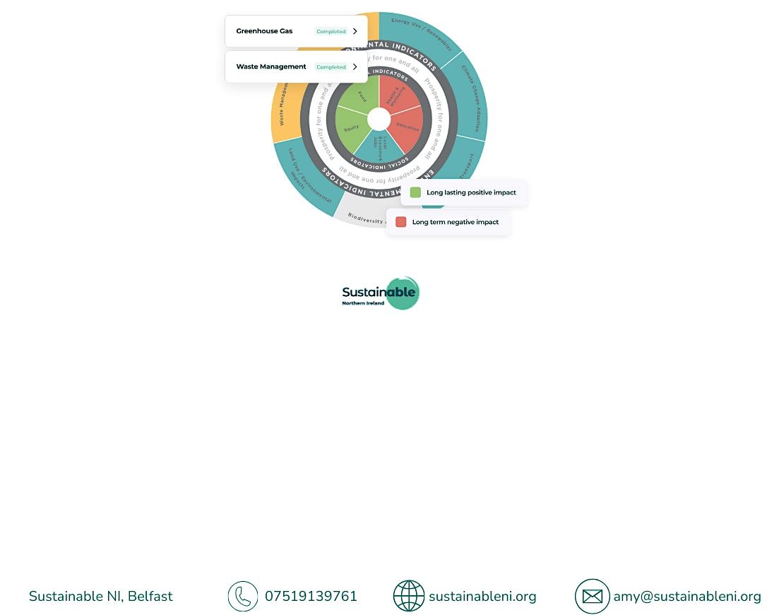 actions using Sustainable NI’s innovative web-based decision tool. Through expert guidance and practical demonstrations, this course will help embed sustainability into everyday decisions, ensuring that projects and proposals minimise harm and promote positive outcomes for the environment and society.