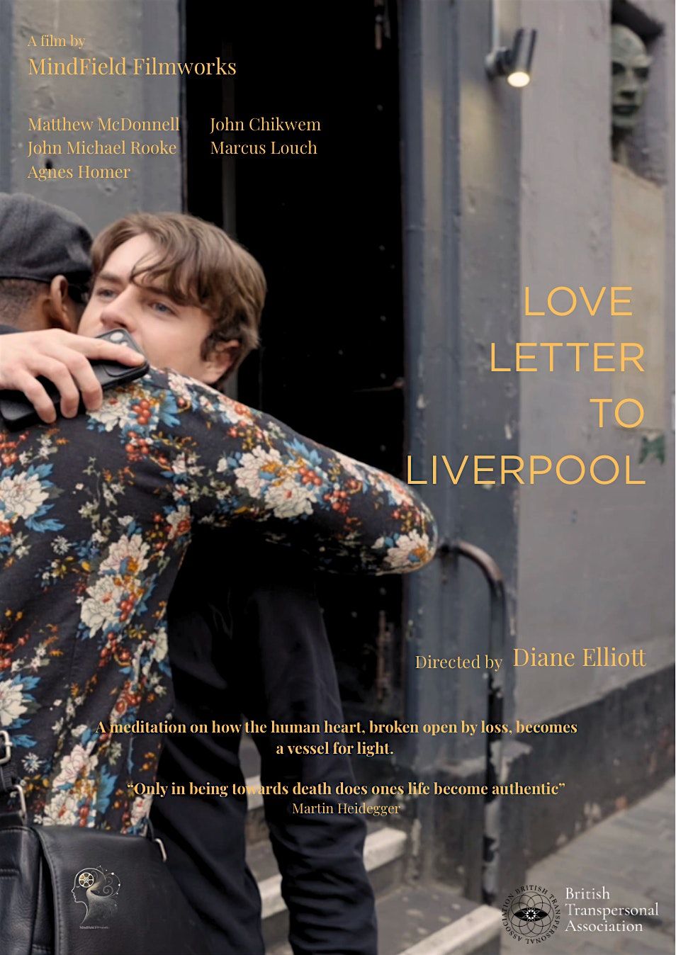 We're pleased to invite you to an evening with the British Transpersonal Association to Launch our new film Love Letter To Liverpool produced by MindField Filmworks. The evening will consist of a screening, followed by a Q&A with a panel of experts and practitioners. The Q&A will touch on the films themes including end of life and care giving.