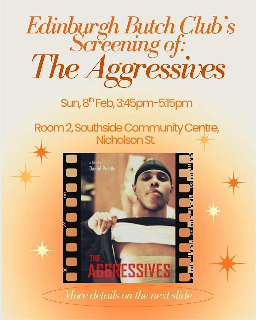 Butch Club will be screening the 2005 documentary 'The Aggressives' on Sunday, February 8th at 3:45pm at Room 2, Southside Community Centre.