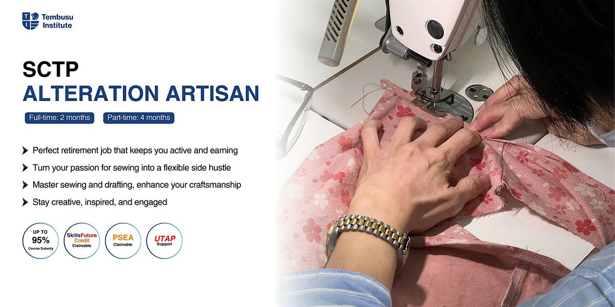 This is perfect for beginners stepping into the world of sewing or anyone eager to sharpen their skills. Learn everything from drafting and sewing to marketing your services on platforms like TikTok on Alteraround — Tembusu Institute’s dedicated alteration platform.