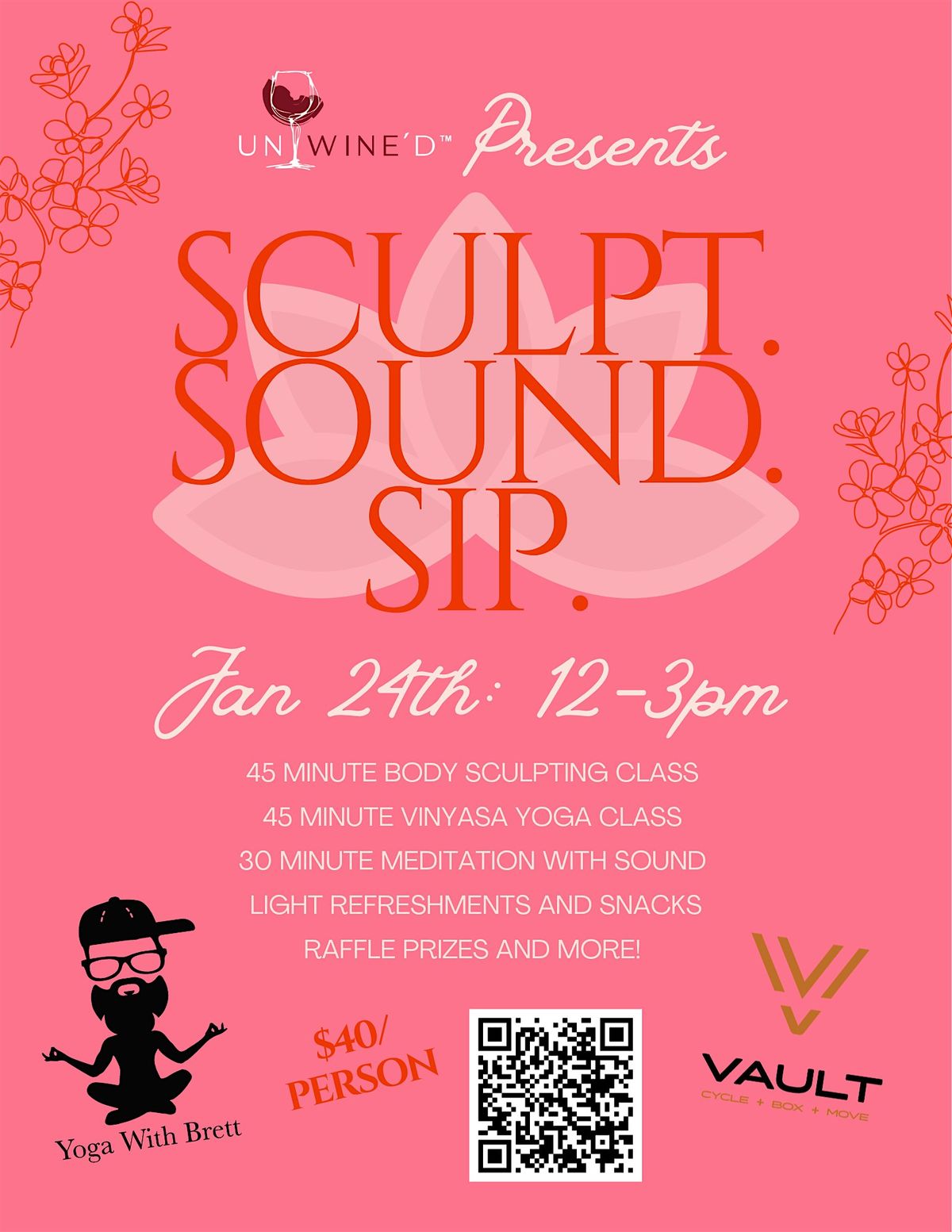 Join us at Unwine’d for an energizing and restorative mind‑body event designed to help you move, unwind, and connect. We’ll kick off with a 45‑minute body‑sculpting session to build heat and strength, followed by a 45‑minute vinyasa yoga class to open the body and deepen your breath. Then settle in for a 30‑minute sound‑guided meditation to reset your mind and leave you feeling grounded and refreshed.