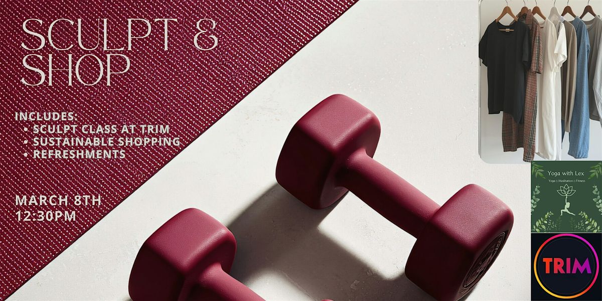10 spots available for Sculpt class 12:30 PM -1:15 PM. Sip & Shop Social Hour open to all 1:15 PM - 3:00 PM. Move, sip and shop! Shop sustainable style - a curated closet featuring pre-loved, gently worn pieces.