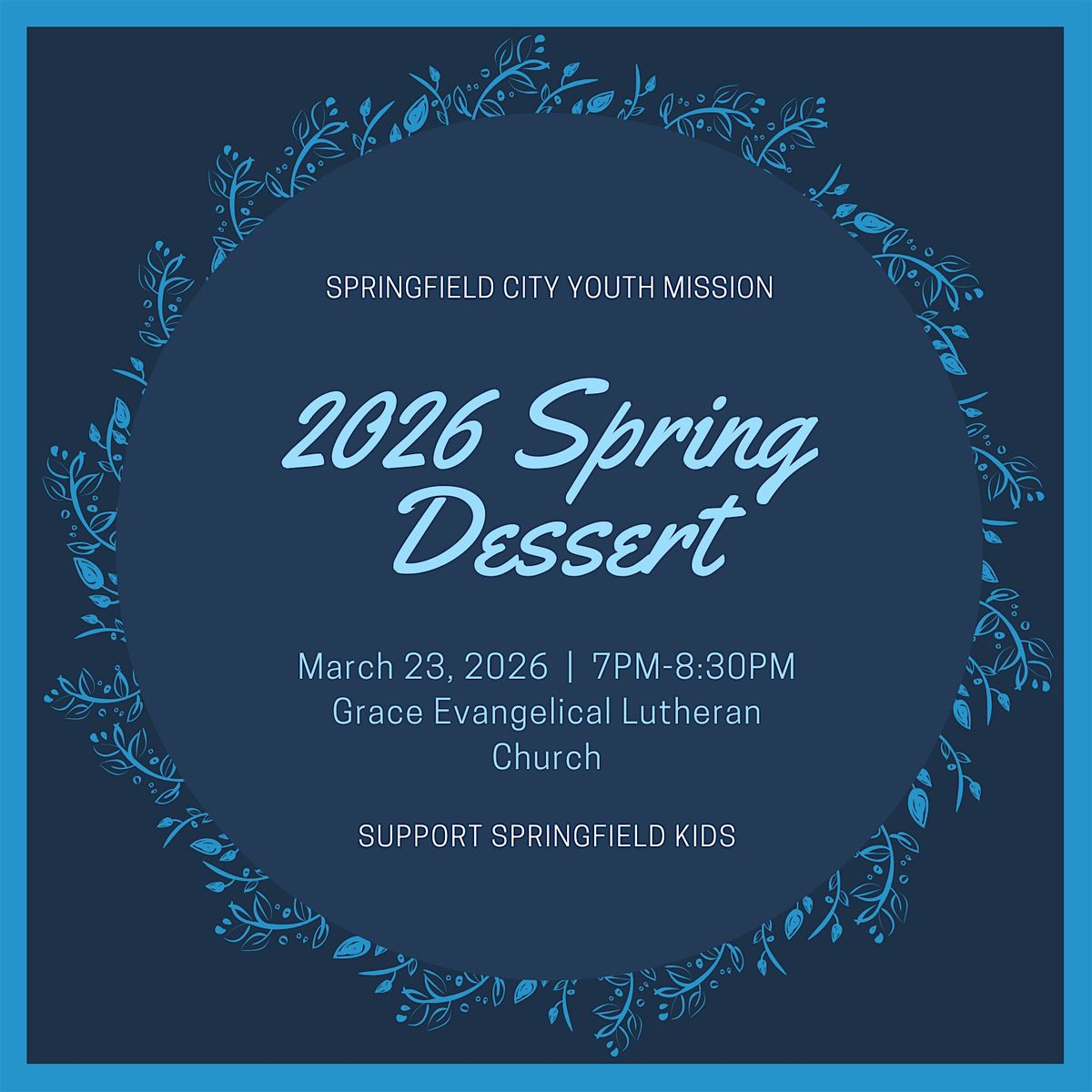 Join us for SCYM's Annual Spring Dessert on Monday, March 23rd at 7 PM at Grace Evangelical Lutheran Church! This delightful fundraising event is dedicated to raising money for Springfield City kids and raising awareness for SCYM.