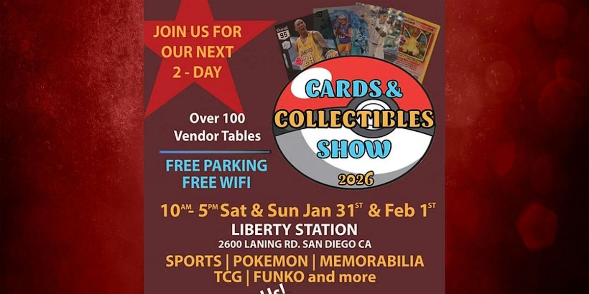 Join collectors from across Southern California for one of the largest paid trading card and collectibles events of 2026 at the Liberty Station Conference Center in San Diego. The Cards & Collectibles Show 2026 is a two-day, ticketed event designed for serious collectors, casual fans, and families looking for premium inventory, rare finds, and unbeatable deals.