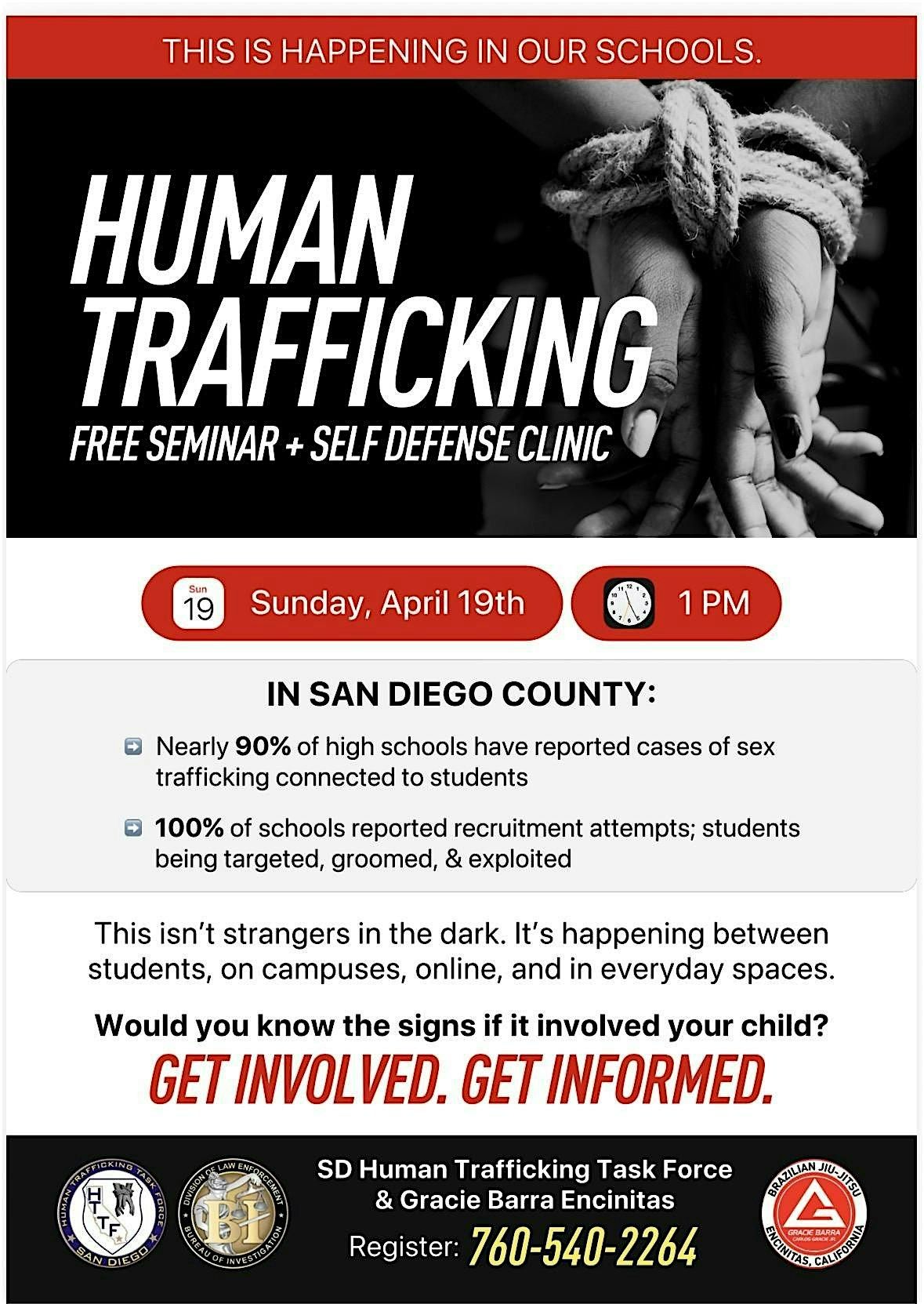 Gracie Barra Encinitas and the San Diego Human Trafficking Task Force are hosting another event on human trafficking, and I’d really appreciate your help spreading the word or joining us.