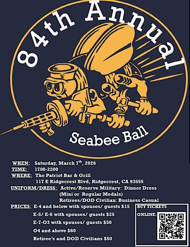 Get ready to dance the night away, enjoy delicious food and drinks, and make unforgettable memories in honor of the 84th Birthday of the Seabees. All are welcome - whether you are active duty, veteran, or a DOD civilian.