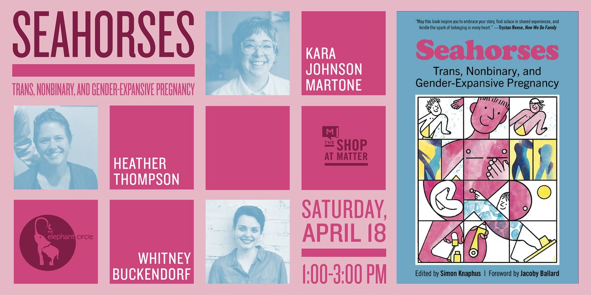 Join us for a reading and conversation celebrating Seahorses: Trans, Nonbinary, and Gender-Expansive Pregnancy, a powerful anthology centering trans, nonbinary, and gender-expansive experiences of pregnancy and birth.