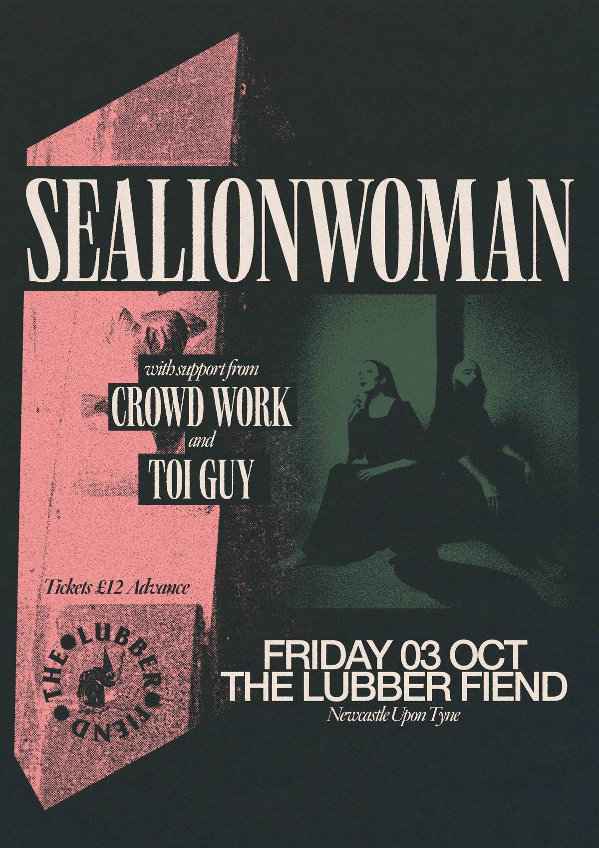 Sealionwoman, is vocalist Kitty Whitelaw and Double bass player Tye McGivern. Together they craft a unique and defiantly uncategorisable sound. Whitelaw’s rich and beguiling vocal delivery and McGivern’s atmospheric, inventive approach to his instrument creates melancholy soundscapes, torch-song transgressions and rapturous drones.