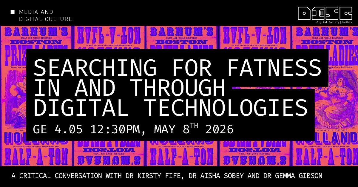 This panel brings together three scholars exploring how fatness is represented, constructed, mediated, and contested through digital technologies. This seminar will draw upon three separate bodies of work that converge on the critical politics of the representation, historicisation, and datafication of fat people.