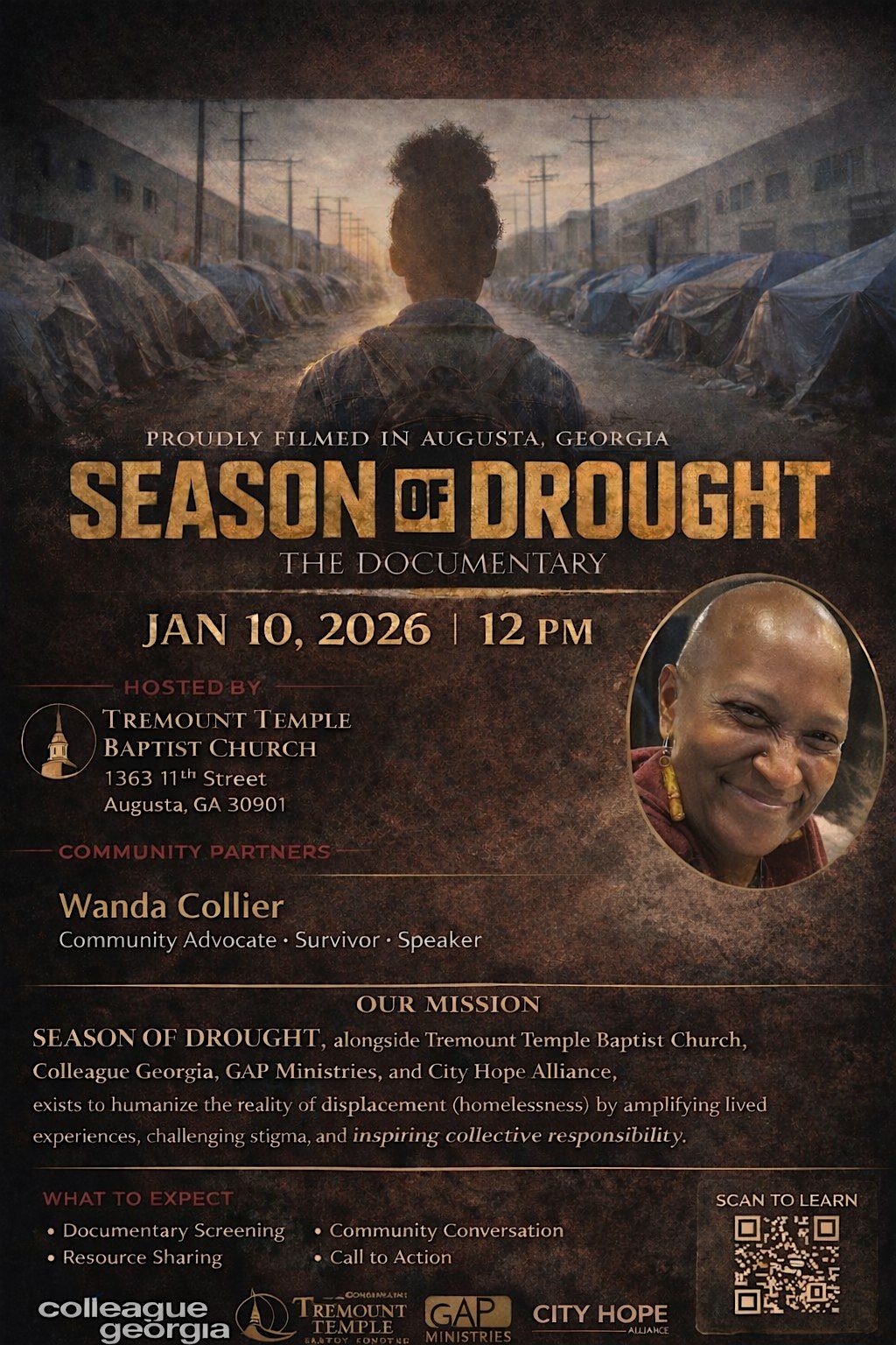 Tremount Temple Baptist Church is hosting a pop-up to introduce Season of Drought, a documentary that amplifies the voices of those experiencing homelessness while dismantling harmful stereotypes, and inspiring nationwide action. In addition, we’ll hear from Wanda Collier, survivor and founder of Stop Our Stigma Foundation, followed by the Season of Drought trailer and an honest community conversation. Guests will have access to shared resources, space for dialogue, and clear ways to take action and support those impacted. This is a moment to listen, learn, and stand in collective responsibility.